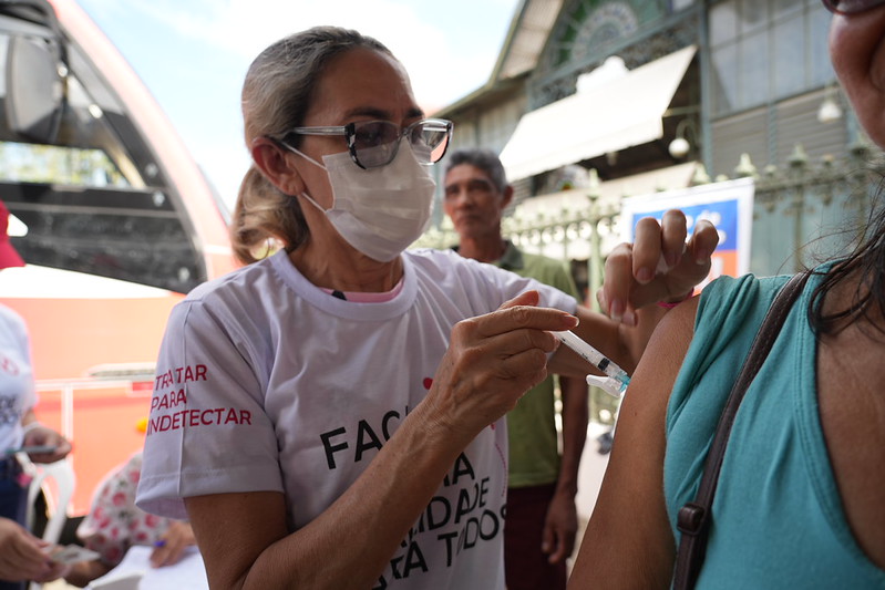 A Prefeitura de Manaus, por meio da Secretaria Municipal de Saúde (Semsa), iniciou, nesta segunda-feira, 1º/12, a programação do “Dezembro Vermelho”, campanha de prevenção e controle do HIV/Aids. O evento de abertura da campanha aconteceu no mercado municipal Adolpho Lisboa, bairro Centro, em parceria com a Fundação de Vigilância em Saúde do Amazonas – Drª Rosemary Costa Pinto (FVS-RCP) e Organizações da Sociedade Civil (OSCs).