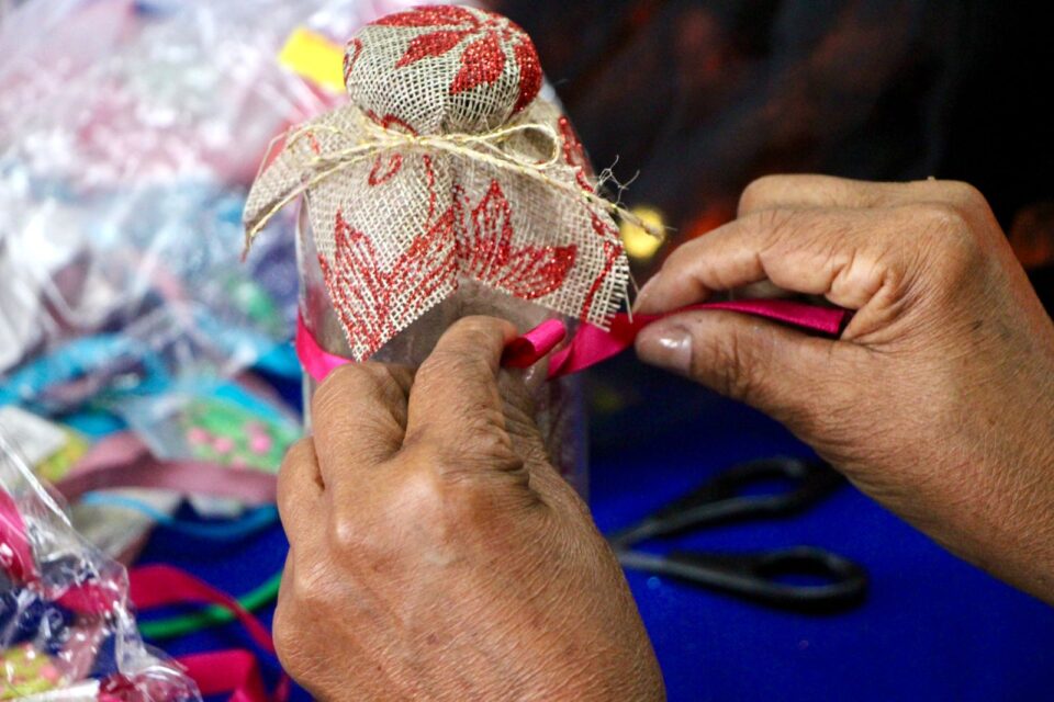 Uma espécie de ‘mini linha de produção’ foi criada no salão multiuso I, do Centro Estadual de Convivência do Idoso (Ceci), no bairro de Aparecida, zona sul de Manaus, na manhã desta sexta-feira (03/05), para realização de uma oficina de artesanato arteterapia, para confecção de lembranças pelo Dia das Mães, com materiais recicláveis. A ação teve como objetivo aprimorar o processo criativo e a qualidade de vida das pessoas idosas, do Grupo de Convivência Futuro Melhor.