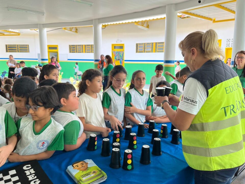 Crianças de escola da Prefeitura de Manaus participam de bate-papo sobre educação para o trânsito