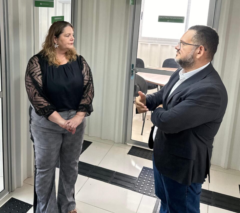 Secretária Nayara Maksoud visitou a sede do Nudesa e discutiu com defensor Arlindo Gonçalves a possibilidade de ampliar o escopo da CRLS, que busca resolver demandas de forma extrajudicial