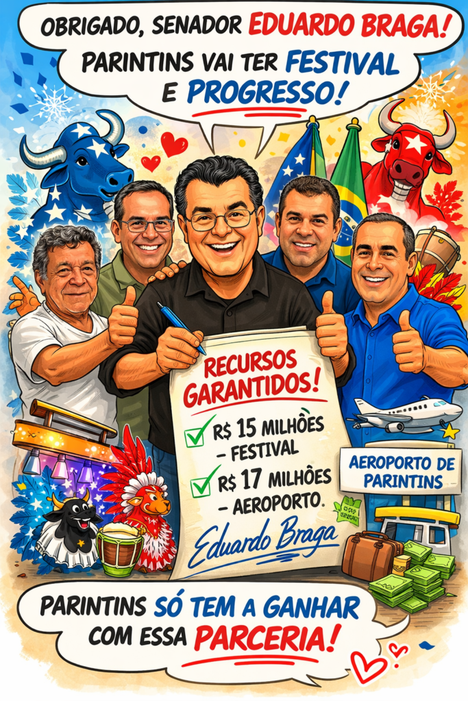 O presidente do Boi Garantido, Fred Góes, também ressaltou que o apoio político foi fundamental para destravar recursos federais que estavam sem solução. Segundo ele, o senador atuou de forma decisiva para garantir a verba que integra o orçamento das agremiações.