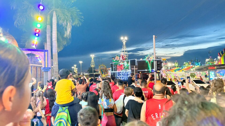 Encerrado o espetáculo, o trio elétrico surgiu na avenida trazendo o Papai Noel e a Mamãe Noel, embalados por músicas natalinas. Fogos iluminaram o céu de forma sincronizada ao desfile de personagens regionais, como o Curupira e a Cobra Grande, que caminharam ao lado de duendes e músicos, criando uma experiência inédita que mistura tradição natalina com os encantos da Amazônia.
