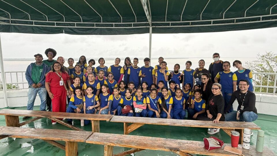 Durante a programação, os estudantes percorreram as dependências e conheceram iniciativas como o laboratório de sementes amazônicas, histórias dos povos originários e ancestrais, objetos arqueológicos, o mirante do Encontro das Águas e o condomínio de abelhas nativas.