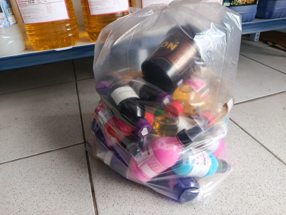 Entre os saneantes em situação irregular, foram encontrados sabão líquido, desinfetantes, água sanitária, desincrustante, gel desengraxante, cera perfumada e líquidos próprios para higienização de inox e vidros. Além destes, os fiscais também encontraram outros tipos de produtos, como cotonetes e absorventes íntimos, sendo comercializados com a validade já expirada.