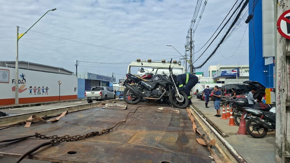 Fiscalização da Prefeitura de Manaus remove motocicletas estacionadas irregularmente na zona Centro-Sul