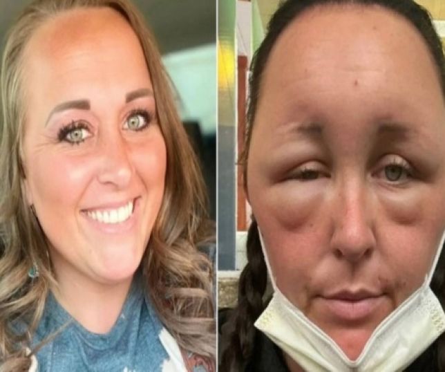 A americana, que tem três filhos, notou o inchaço na cabeça dois dias após a aplicação inicial. Ficou tão ruim que ela fez duas viagens ao hospital para obter ajuda médica em alguns dias.