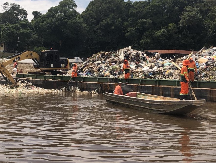 A limpeza aquática contou com apoio de pequenas embarcações e de equipamentos adaptados, incluindo barreiras confeccionadas com garrafas PET que funcionam como uma espécie de rede de arrasto, concentrando o lixo flutuante e facilitando sua remoção com trator de esteira e retroescavadeira. O método aumenta a eficiência da coleta e impede que os resíduos avancem para áreas mais profundas ou atinjam o rio Negro.