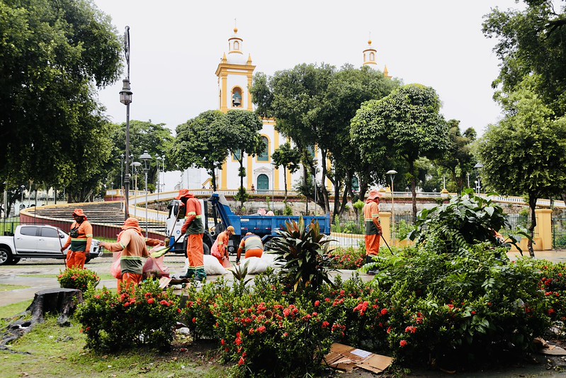 A Prefeitura de Manaus, por meio da Secretaria Municipal de Limpeza Urbana (Semulsp), intensificou, na tarde deste domingo, 11/1, as ações de limpeza na praça da Matriz, no Centro, zona Sul. Os serviços, que tiveram início ainda nas primeiras horas do dia, foram retomados após novos resíduos serem descartados de forma irregular no local, o que exigiu o retrabalho das equipes municipais.