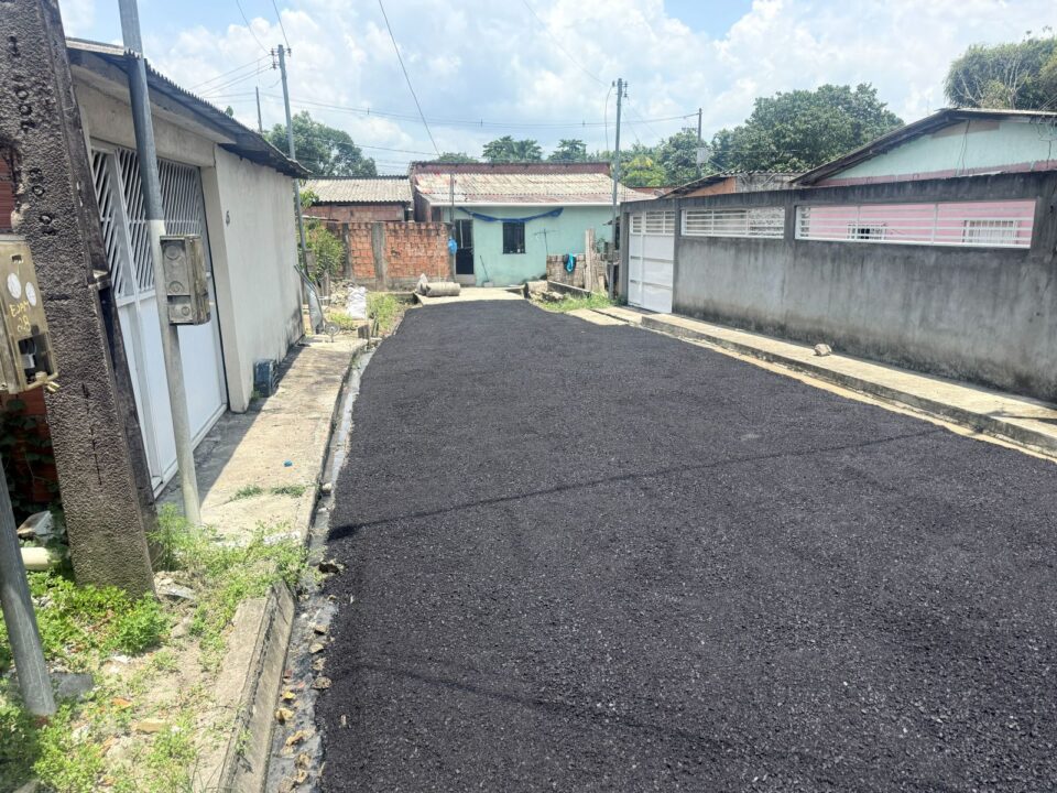 A rua, antes marcada por buracos, crateras e vegetação, agora passa por um processo de transformação com a recuperação asfáltica. O cenário de dificuldades para pedestres e motoristas começa a mudar à medida que os trabalhos avançam, recuperando cada trecho com uma nova camada de asfalto.
