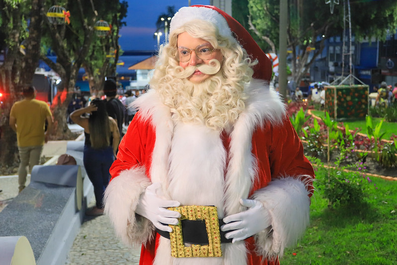 A programação contou com a chegada do Papai Noel e com a emocionante apresentação de um grupo de coral de idosas da Fundação de Apoio ao Idoso Dr. Thomas (FDT), que levou o sentimento de ternura e celebração ao público presente. Em seguida, houve o acendimento das luzes dos ornamentos natalinos distribuídos pela praça, seguido por uma surpreendente “chuva de neve”, que completou a atmosfera mágica da festa.
