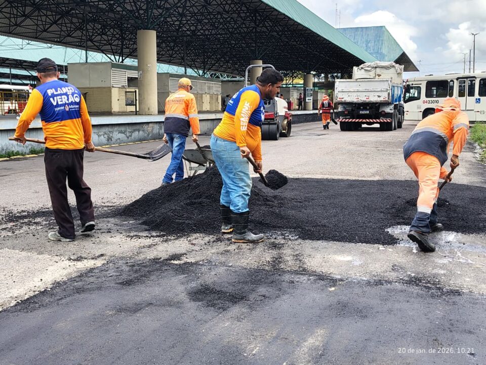 Prefeitura de Manaus, por meio do Instituto Municipal de Mobilidade Urbana (IMMU), a Secretaria Municipal de Infraestrutura (Seminf) e a Secretaria Municipal de Limpeza Urbana (Semulsp), segue com os serviços de manutenção, limpeza e tapa-buracos nos terminais de integração da capital. As ações têm como objetivo garantir mais segurança, conforto e qualidade para os usuários do transporte coletivo.