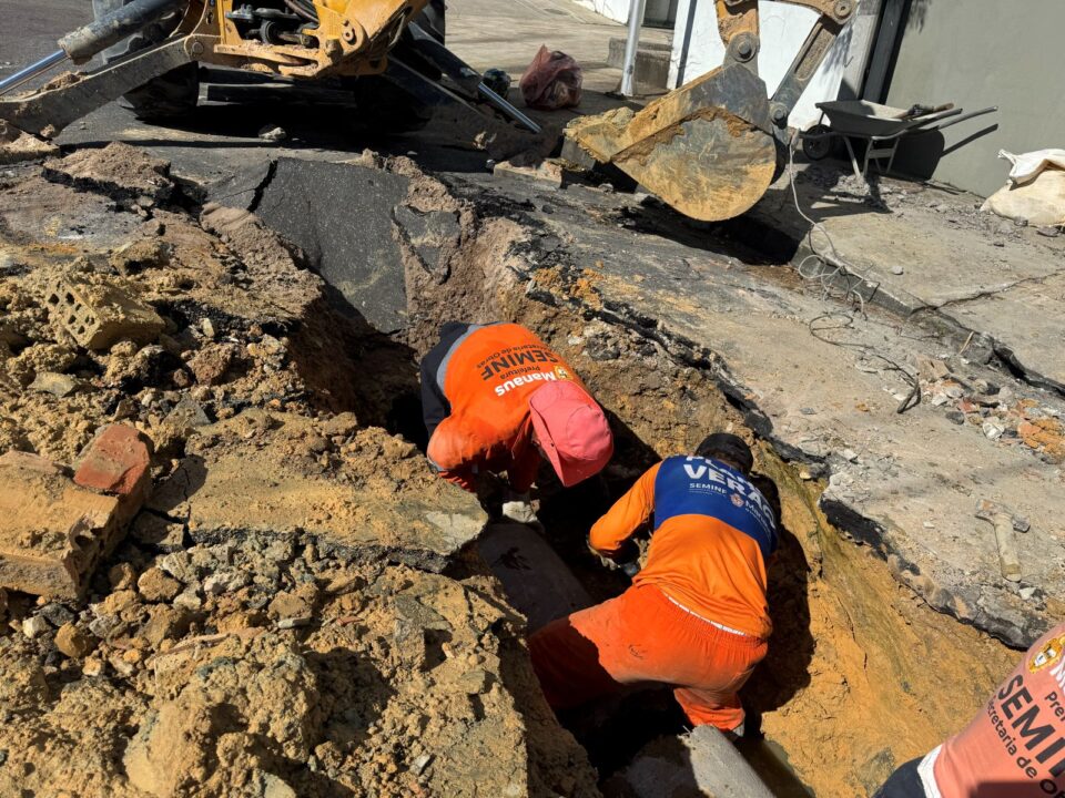 A Prefeitura de Manaus, por meio da Secretaria Municipal de Infraestrutura (Seminf), iniciou, nesta quarta-feira, 11/2, a recuperação de uma rede de drenagem profunda na rua Tomas de Vila Nova, no Centro, zona Sul. A obra visa substituir os tubos que ficaram deteriorados em decorrência da obstrução da tubulação pelo descarte irregular do lixo.