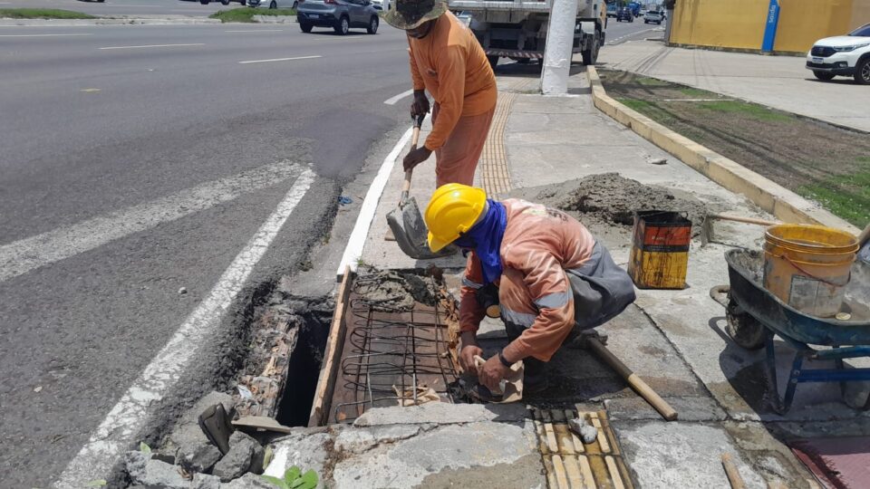 A Prefeitura de Manaus, por meio da Secretaria Municipal de Infraestrutura (Seminf), iniciou, nesta quarta-feira, 24/9, a recuperação de um trecho da drenagem superficial da avenida Torquato Tapajós, no bairro Flores, zona Centro-Sul. O serviço corrige trechos desgastados da drenagem superficial e passeio público da via, devolvendo segurança para pedestres e motoristas que utilizam diariamente uma das avenidas mais movimentadas da capital.