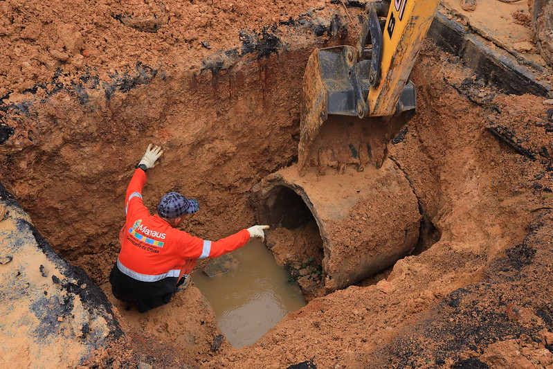 A Prefeitura de Manaus, por meio da Secretaria Municipal de Infraestrutura (Seminf), realizou, nesta quinta-feira, 9/10, uma obra emergencial de reconstrução do sistema de drenagem profunda em um trecho da avenida Brasil, no bairro Compensa, zona Oeste da cidade.