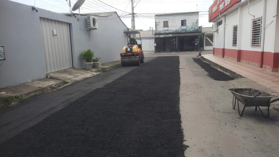 A intervenção garante melhores condições de tráfego e segurança viária para motoristas e pedestres, com aplicação de nova camada asfáltica em trechos danificados da via.