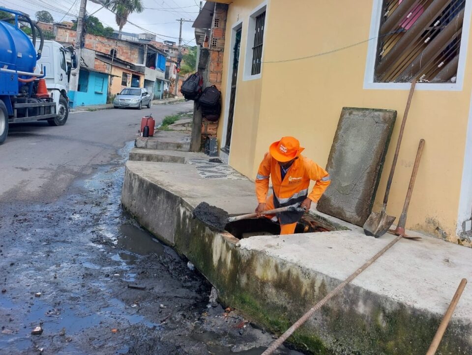 A Prefeitura de Manaus, por meio da Secretaria Municipal de Infraestrutura (Seminf), segue avançando com ações emergenciais e preventivas de recuperação da drenagem superficial e profunda na rua Mauá da Serra, no bairro Zumbi dos Palmares, zona Leste da capital. Nesta sexta-feira, 12/12, as equipes estão atuando na desobstrução total da rede, que se encontrava comprometida devido ao acúmulo de lixo e sedimentos ao longo da tubulação.