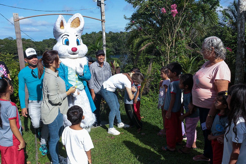 “Hoje é uma manhã muito gratificante. Estamos no rio Negro hoje, vamos fazer quatro comunidades que serão aí abençoadas. A segunda edição do ‘Páscoa na Floresta’ chegando, trazendo coelhinho, trazendo esse momento tão especial para essas crianças que a gente sabe que é distante”, afirmou.