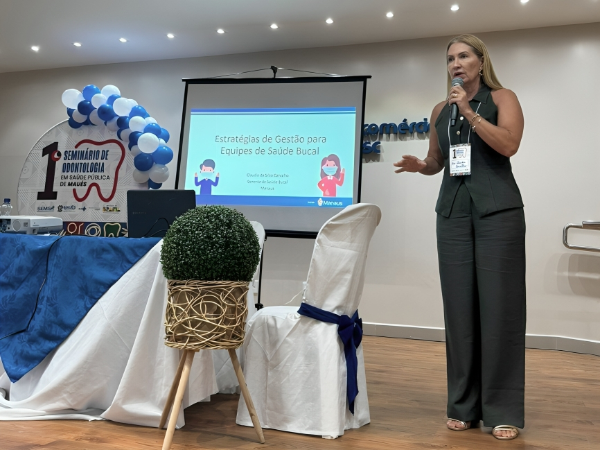 Ações e experiências desenvolvidas pela Prefeitura de Manaus na área da saúde bucal, estiveram entre os temas discutidos no 1º Seminário de Odontologia em Saúde Pública de Maués, realizado nesta terça e quarta-feira, 11 e 12/11. O ciclo de palestras do encontro no município, localizado a 276 quilômetros da capital, contou com quatro servidoras, dentre gestoras e profissionais de saúde bucal, da Secretaria Municipal de Saúde (Semsa) de Manaus.